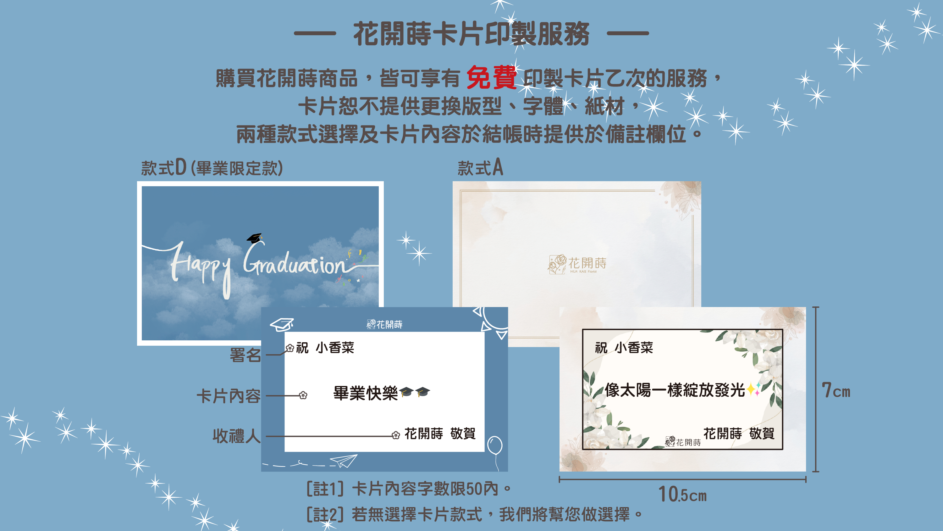 請在"訂單備註"中,寫上您要祝賀的內容、收件方名稱、署名